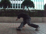 2.六歩の1歩目と2歩目を同時に動かし、90度体の向きを横に向き直します。これが一歩目です。