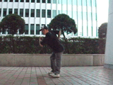 7.後ろに残っていた右足を持ち上げ、両足をそろえます。2の際と同じように腕を顔の高さまで持ち上げます。以降2〜7の繰り返しです。